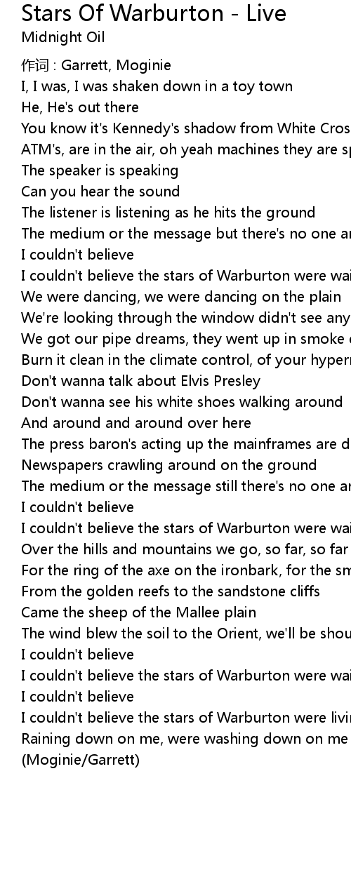 | I couldn't believe the stars of Warburton were waiting for me | |
