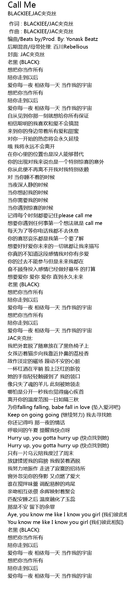 | [01:20.178] | xiang yao ni yu dao ren he shi di yi ge xiang fa jiu shi call me |