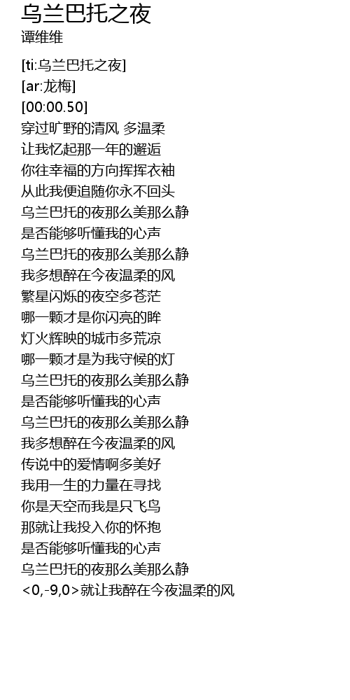 | [02:08.830] | 乌兰巴托的夜那么美那么静 |
