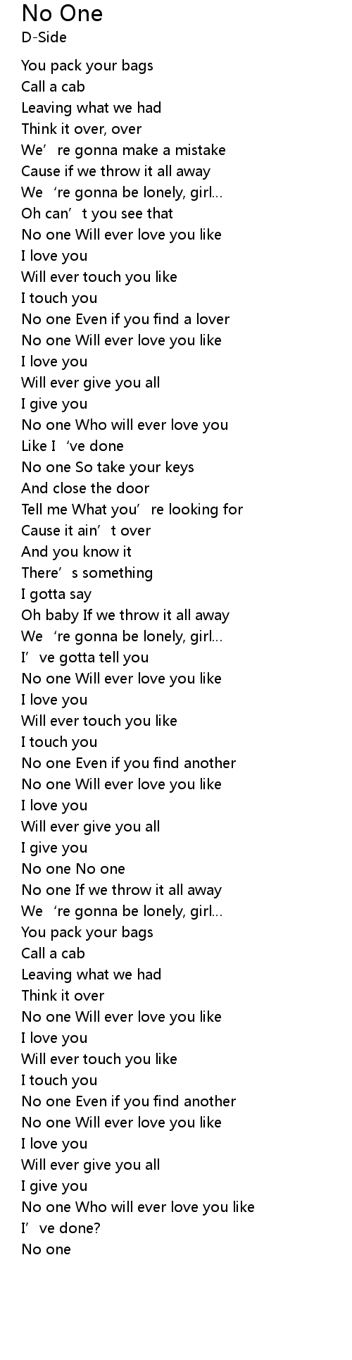 | No one Who will ever love you | |