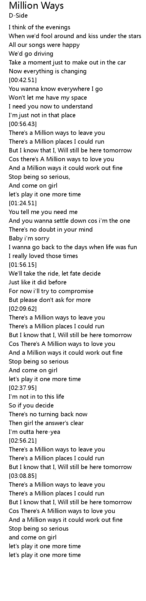 | [00:56.77] | There's a Million ways to leave you |