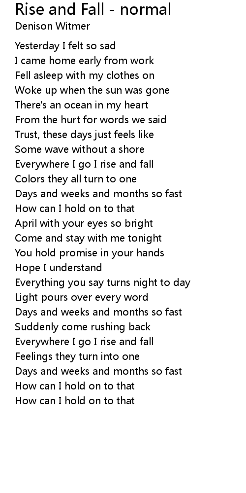 Everywhere I go I rise and fall |