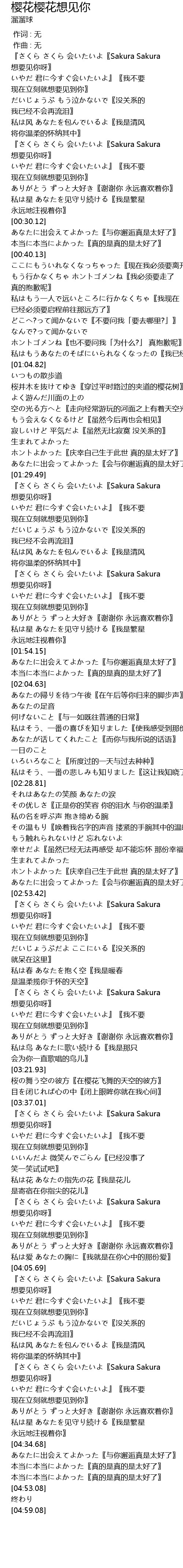 | [01:42.13] | 『さくら さくら 会いたいよ〖Sakura Sakura 想要见你呀〗 |