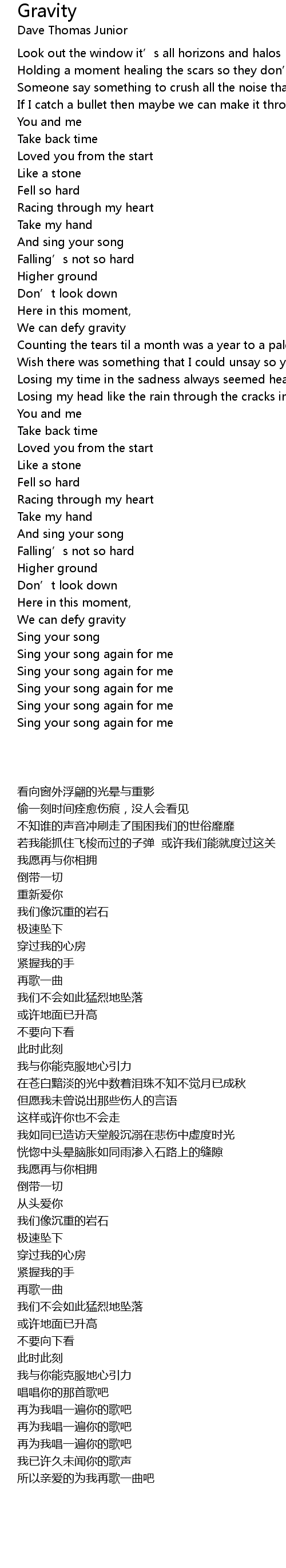 | [03:00.50] | Sing your song again for me |