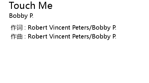 [00:00.000] 作词 : Robert Vincent Peters/Bobby P.