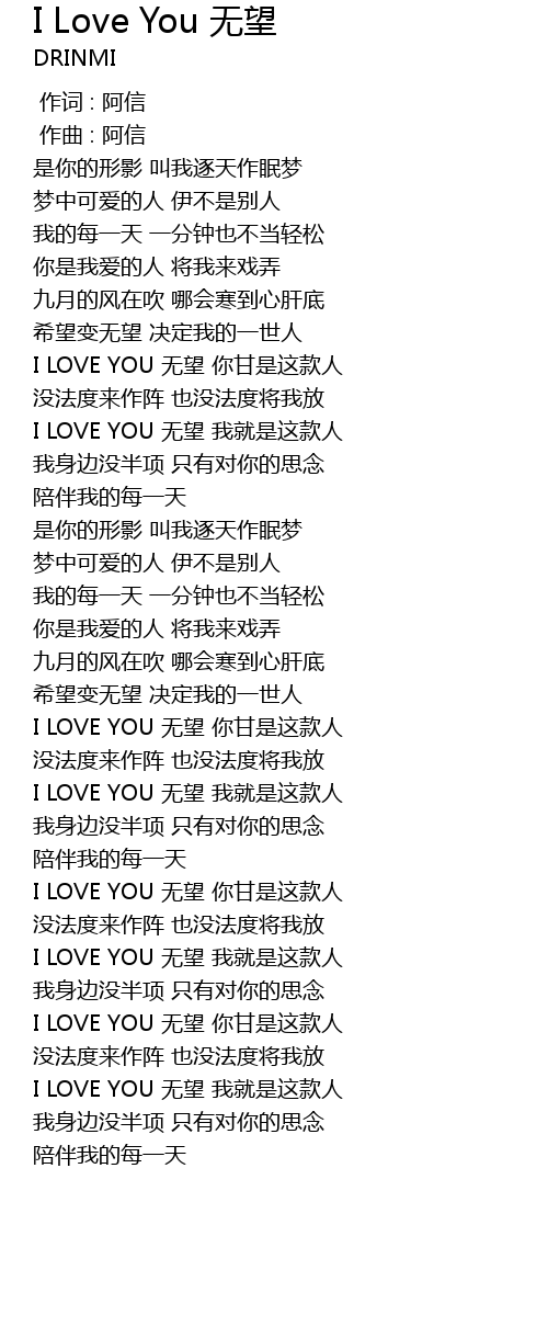 | [03:33.770] | I LOVE YOU 无望 我就是这款人 |