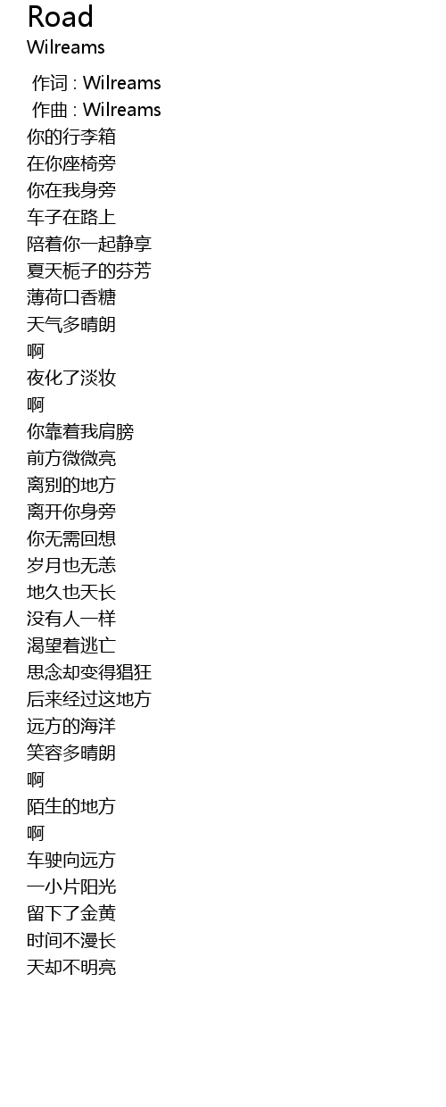 | [00:00.000] | 作词 : Wilreams |