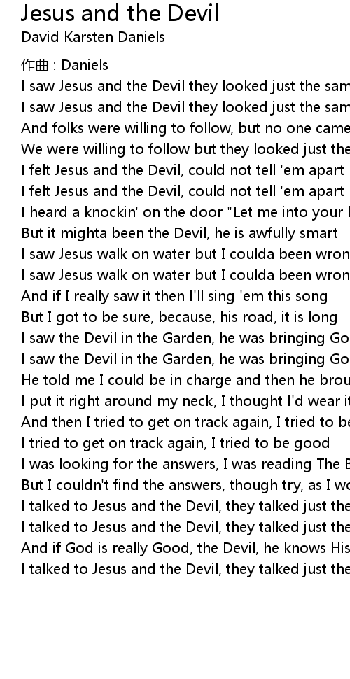 | I felt Jesus and the Devil, could not tell ' em apart | |