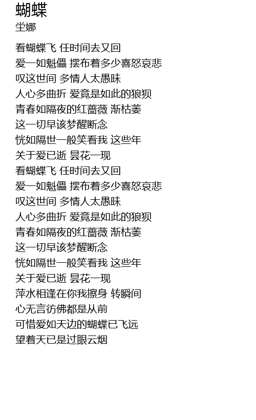 | [00:39.340] | 看蝴蝶飞 任时间去又回 |