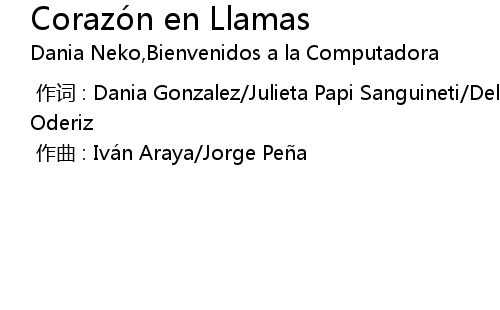| [00:00.000] | 作词 : Dania Gonzalez/Julieta Papi Sanguineti/Delia Iglesias Oderiz |