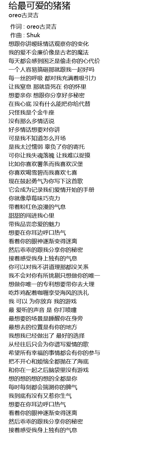 | Album | 给最可爱的猪猪(prod.by.Shuk) |