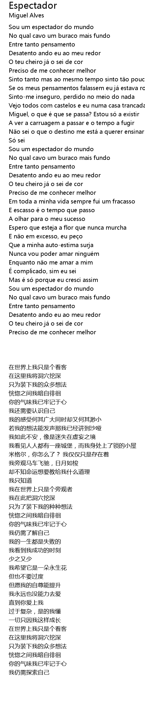 | [00:22.996] | Sou um espectador do mundo |
