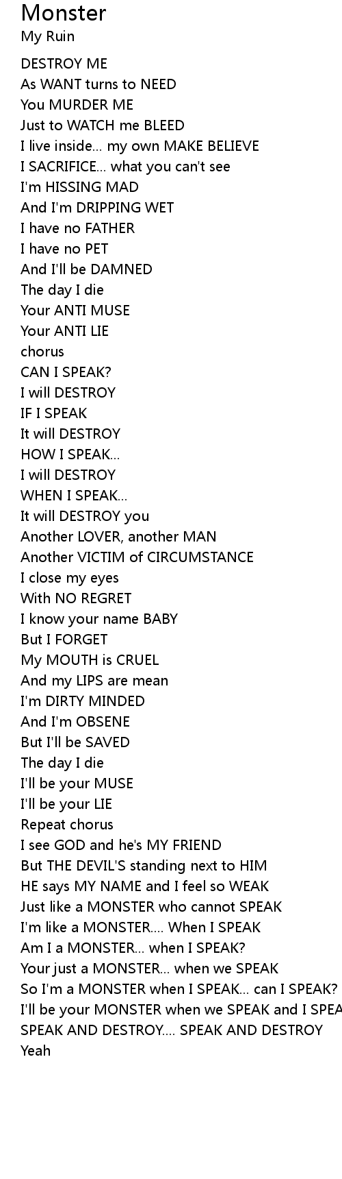 I'll be your MONSTER when we SPEAK and I SPEAK to DESTROY... |