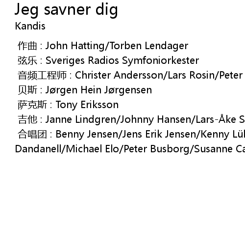 | [00:00.000] | he chang tuan : Benny Jensen Jens Erik Jensen Kenny Lü bcke Lise Dandanell Michael Elo Peter Busborg Susanne Carstensen |