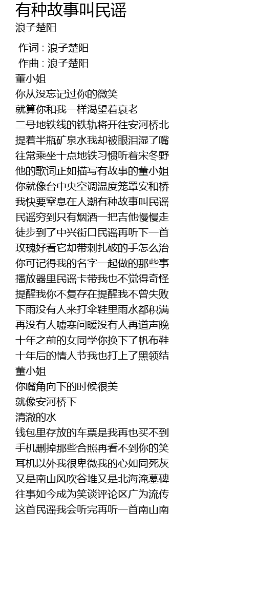 | [01:35.697] | 这首民谣我会听完再听一首南山南 |