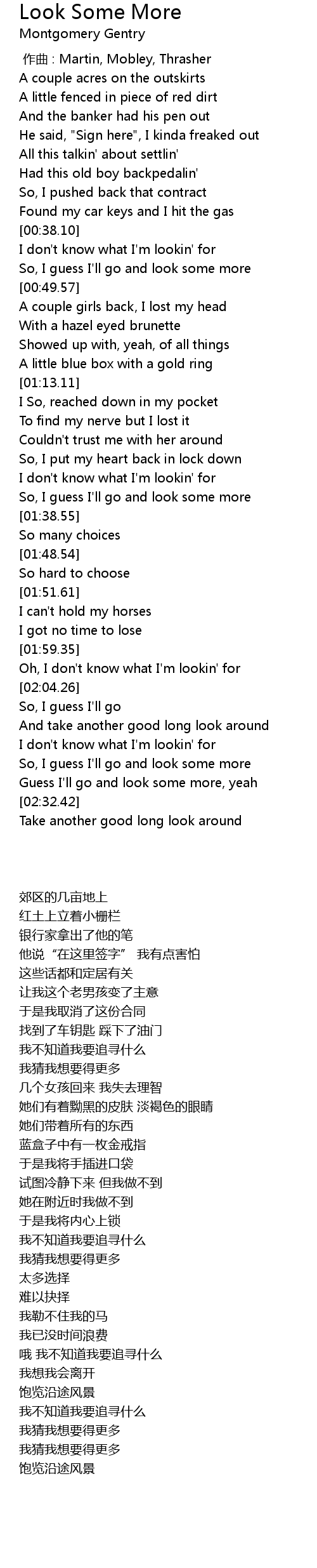 | [02:23.43] | Guess I' ll go and look some more, yeah |