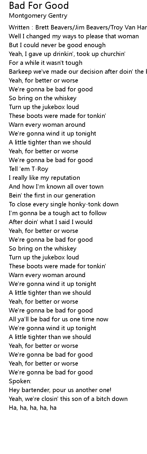 | We're gonna be bad for good | |