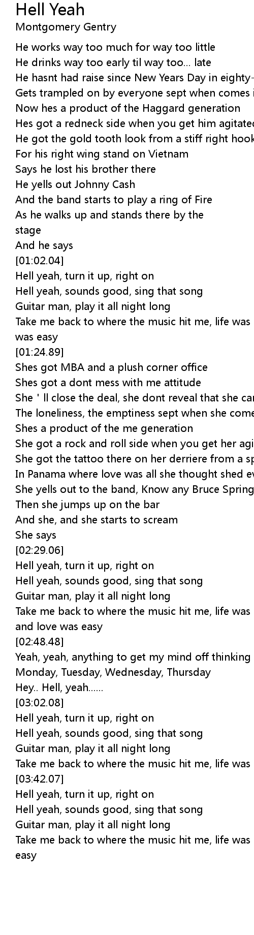 | [02:57.72] | Hey.. Hell, yeah...... |