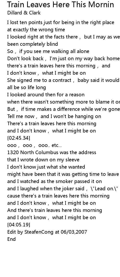 | [00:48.45] | there′s a train leaves here this morning, and |