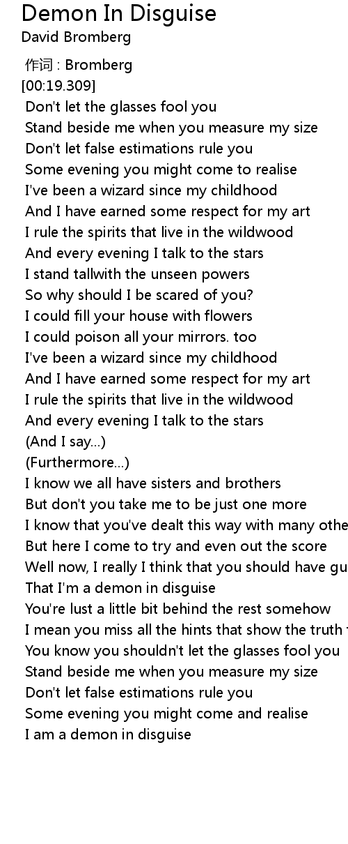 | [03:59.776] | That I' m a demon in disguise |
