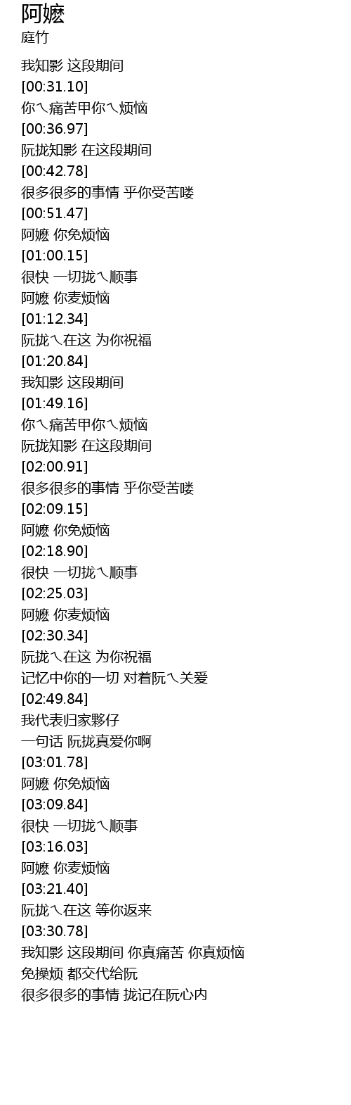 | [03:04.34] | 阿嬷 你免烦恼 |