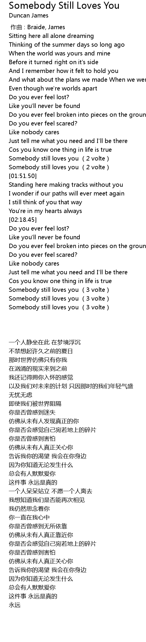 | [01:45.62] | Somebody still loves you (2 volte) |