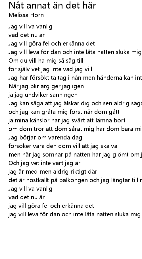 | jag vill leva f r dan och inte l ta natten sluka mig n mer |