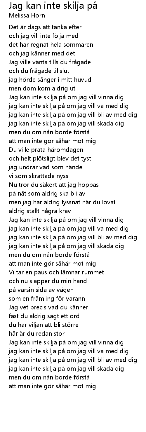 | Jag kan inte skilja p om jag vill vinna dig | |