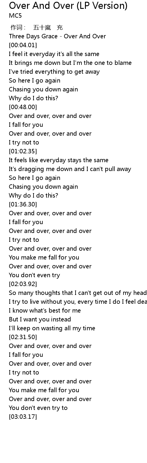 | [00:01.24] | Three Days Grace - Over And Over |