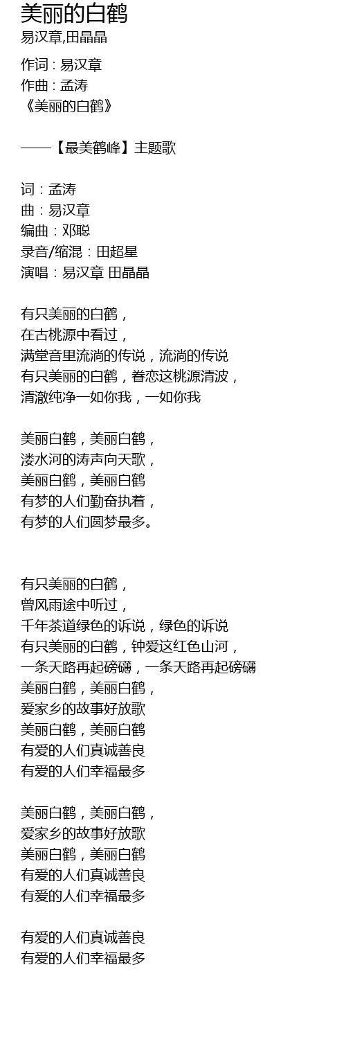 | 有只美丽的白鹤,钟爱这红色山河, | |