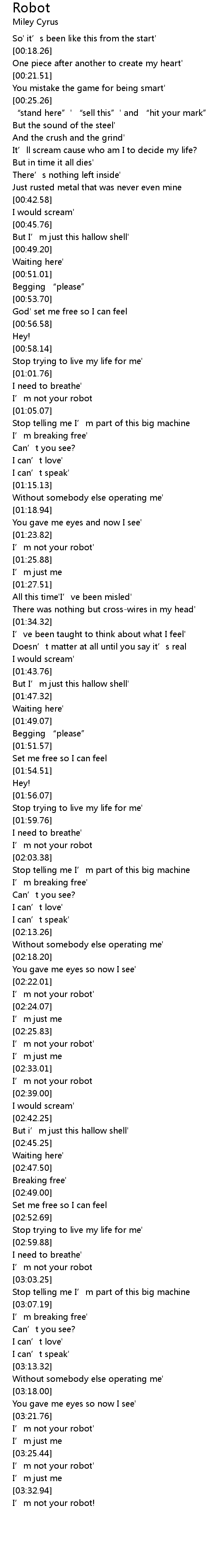 | [03:01.50] | I' m not your robot |