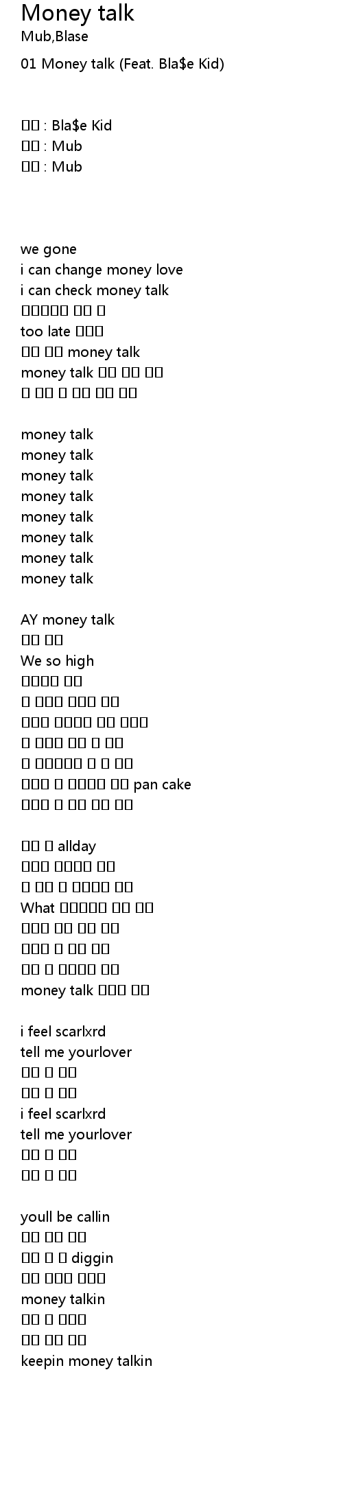 | 우린 이미 money talk | |