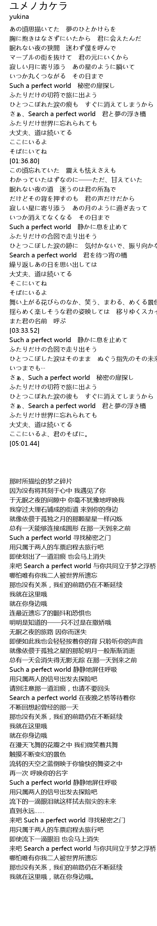 | [04:25.85] | Such a perfect world mi mi fei tan |