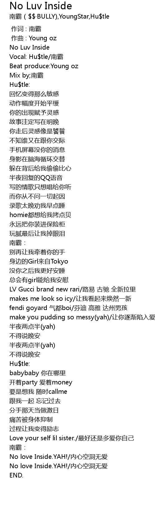 | [01:36.830] | No love Inside.YAH!/内心空洞无爱 |