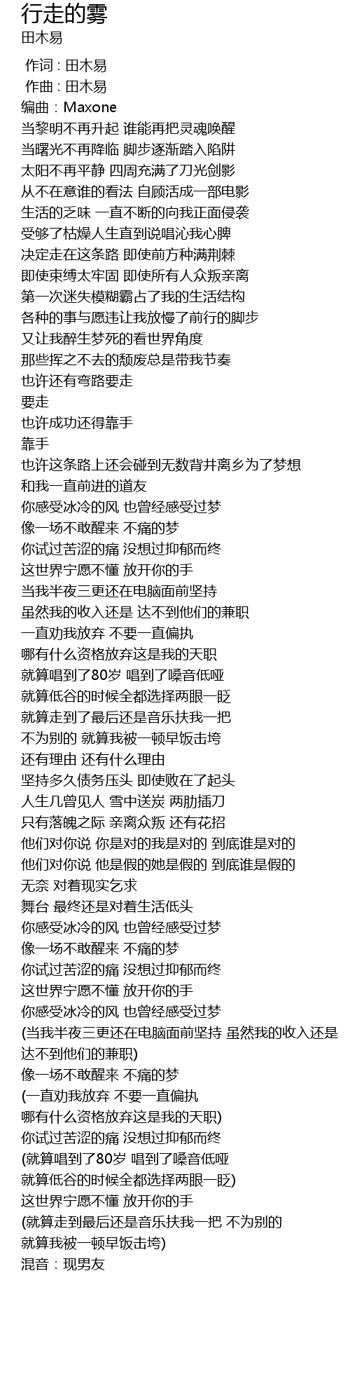 | [00:00.000] | 作词 : 田木易 |