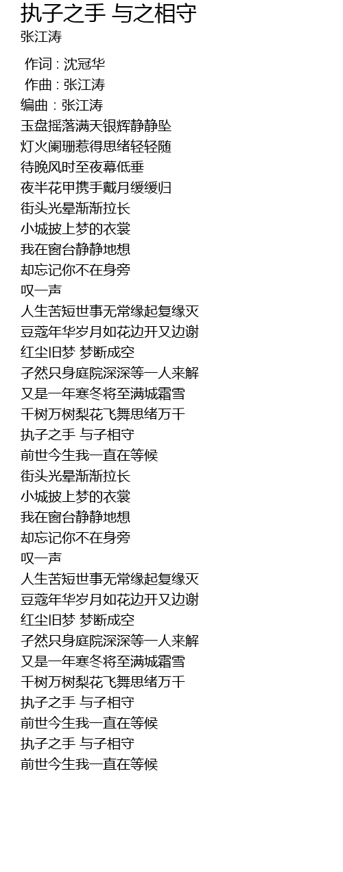 | [02:39.686] | zhí zi zhī shǒu yǔ zi xiāng shǒu |