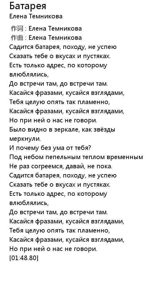 作词 : Елена Темникова |