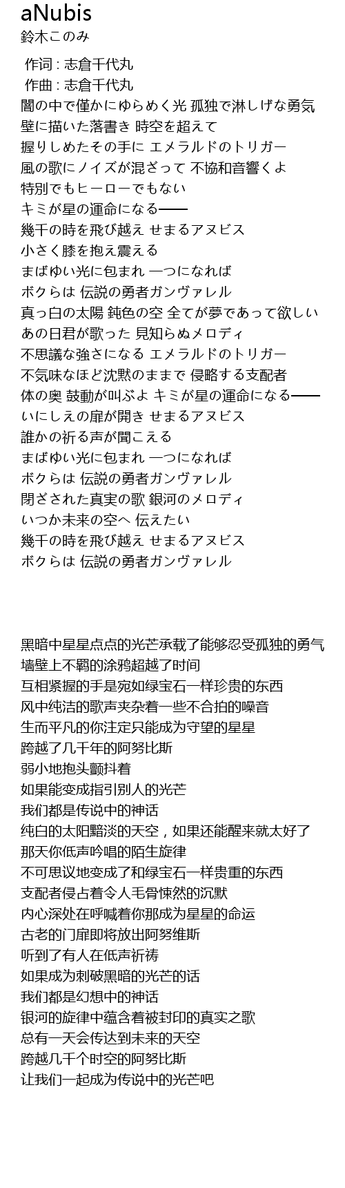 | [03:45.70] | 幾千の時を飛び越え せまるアヌビス |
