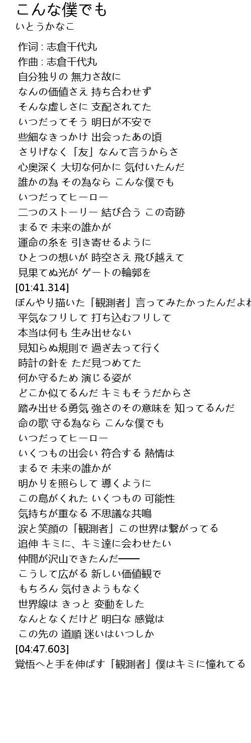 | [01:01.778] | 誰かの為 その為なら こんな僕でも |
