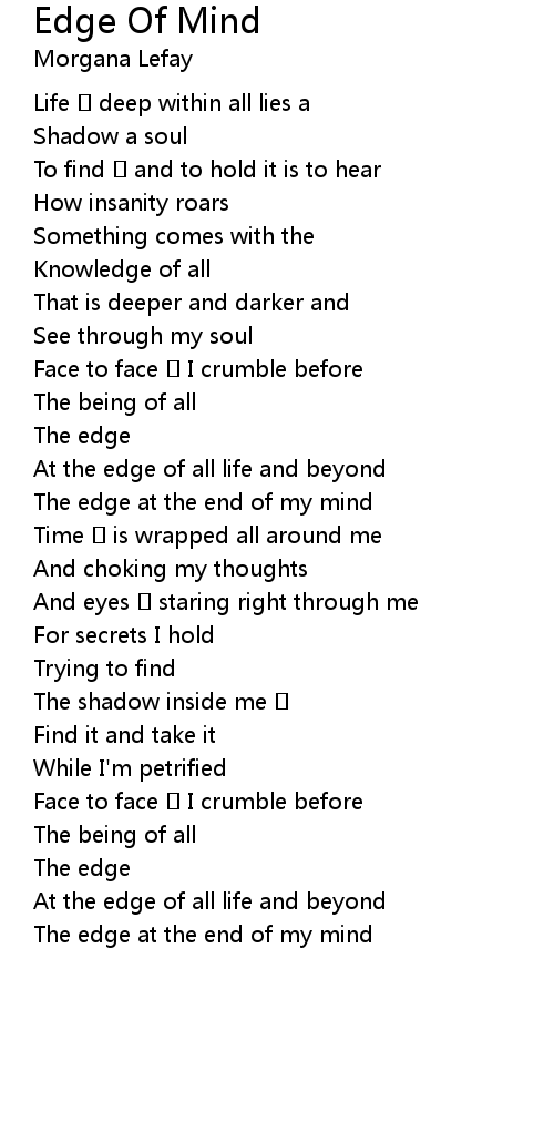 | The edge at the end of my mind |