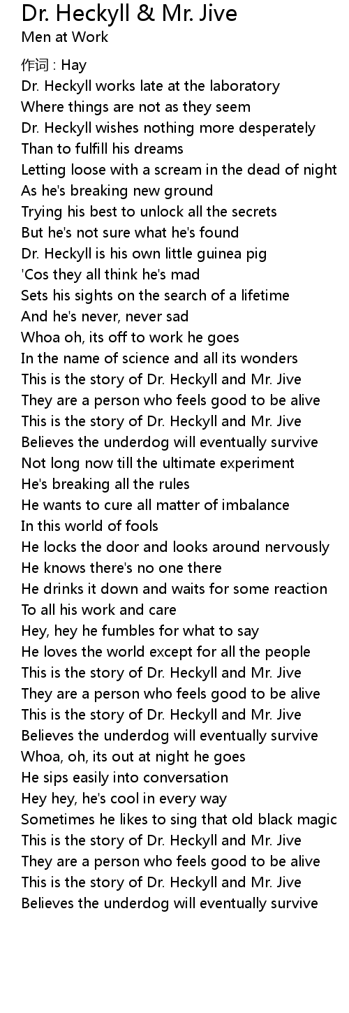 | This is the story of Dr. Heckyll and Mr. Jive | |