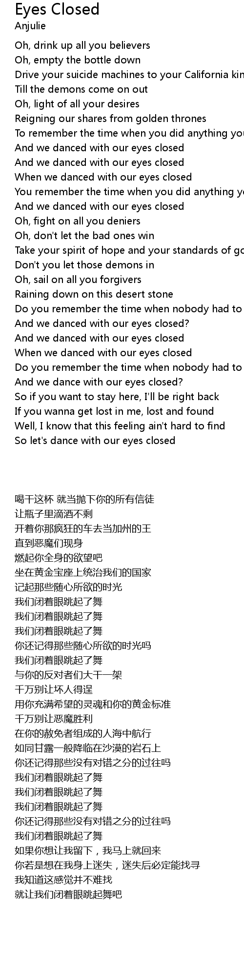 So let's dance with our eyes closed |
