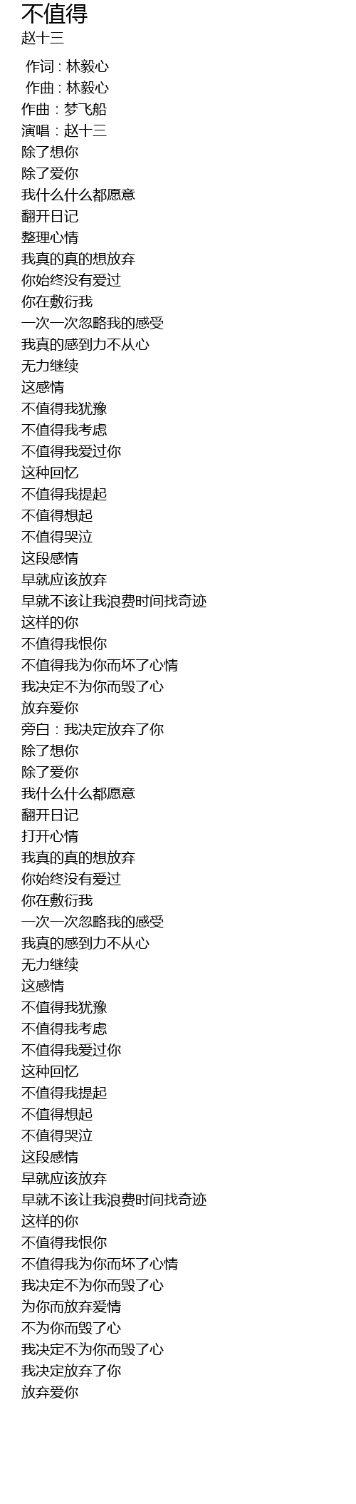 | [01:39.922] | bù zhí de wǒ hèn nǐ |