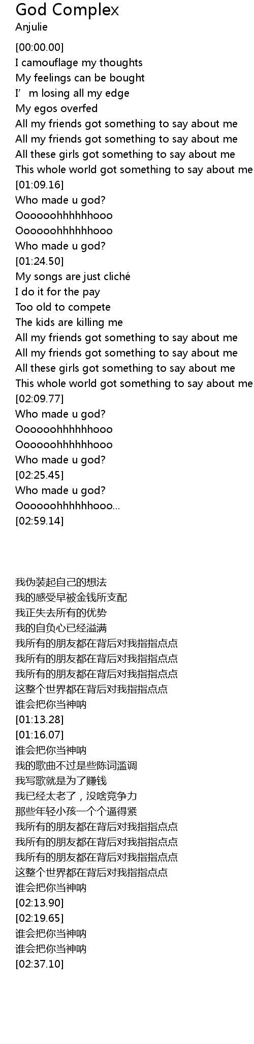 | [02:34.21] | Who made u god? |
