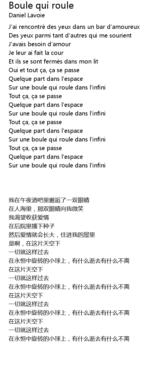 | [00:43.71] | Sur une boule qui roule dans l' infini |