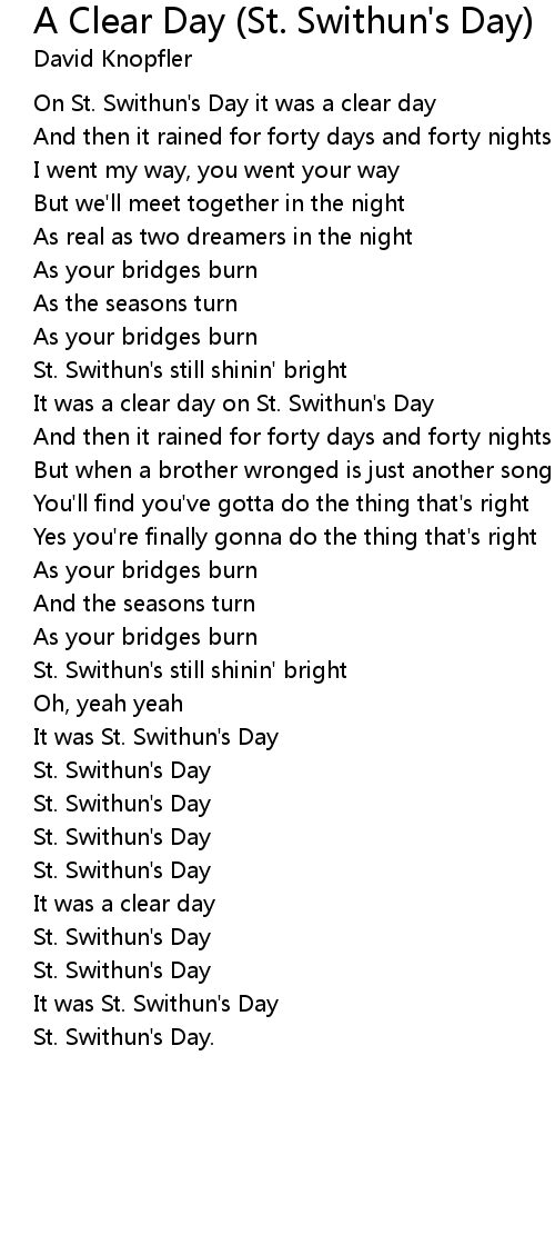 A Clear Day (St. Swithun's Day) Lyrics