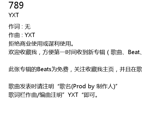 | 歌曲发表时请注明“歌名(Prod by 制作人)” 歌词栏作曲/编曲注明”YXT“即可。 |