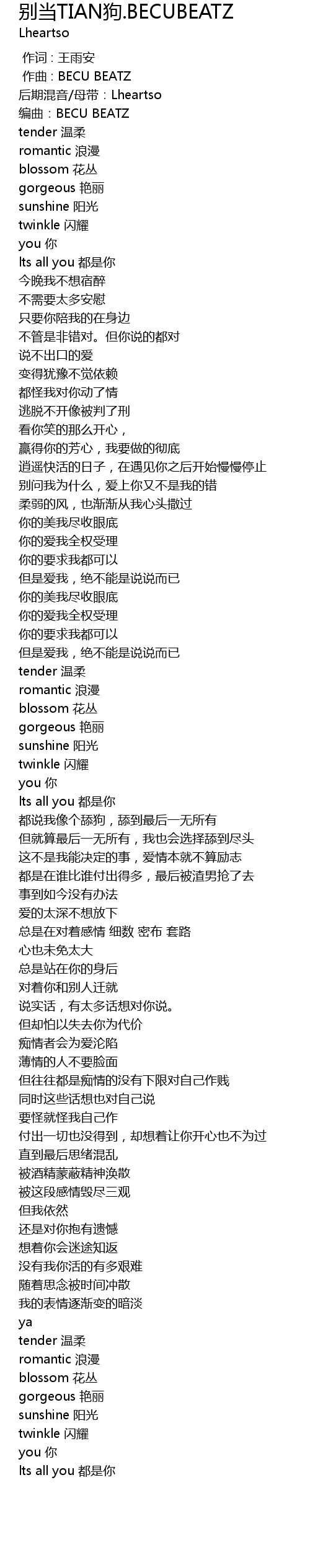 | [00:05.762] | 后期混音/母带:Lheartso |