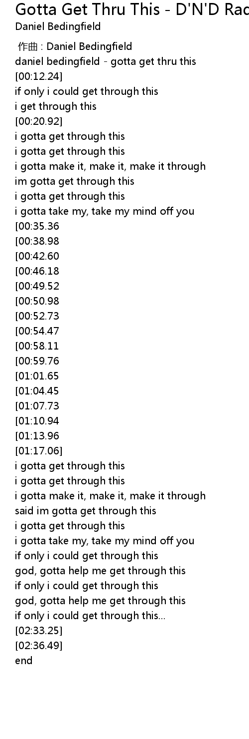 | [02:25.48] | god, gotta help me get through this |