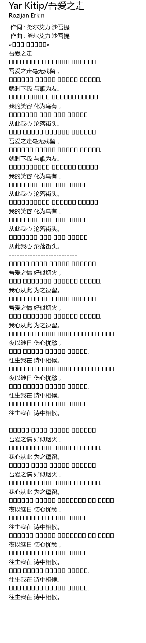 | [00:00.000] | 作词 : 努尔艾力·沙吾提 |